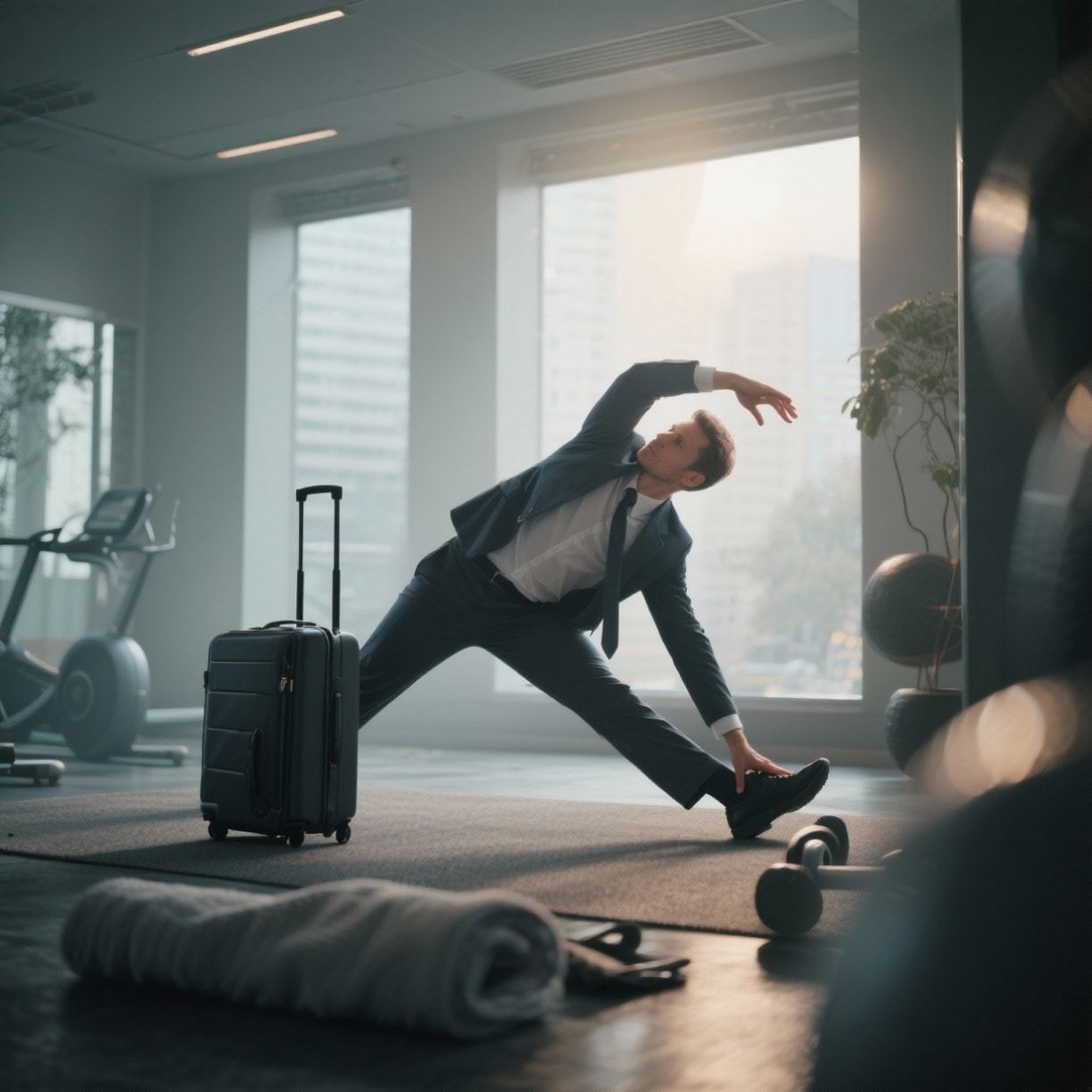 - Bewegung: Selbst auf kurzen Trips sollten Maßnahmen zur körperlichen Aktivität integriert werden – sei es ein Spaziergang, Stretching im Hotel oder Training im Fitnessraum.